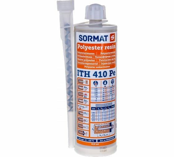 Анкер химический Sormat ITH 410 Pe - это профессиональное решение для крепления различных материалов, таких как бетон, кирпич, керамзит и камень. Продукт от известного бренда Sormat, который зарекомендовал себя на рынке благодаря качеству и надежности своей продукции.