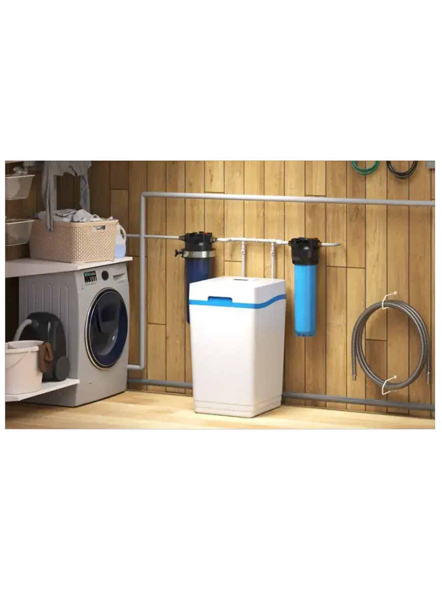 Экономичная и надежная система комплексной очистки воды для умягчения (до 28 мг-экв/л), обезжелезивания (до 12 мг/л), удаления марганца (до 5 мг/л) и устранения сероводорода (до 1 мг/л). Эффективное снижение содержания сероводорода достигается благодаря специальному материалу KDF 85 в составе фильтрующей смеси.