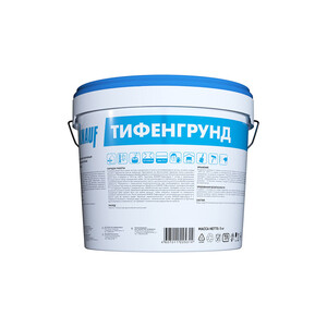 Кнауф-Тифенгрунд – готовая к применению, быстросохнущая, паропроницаемая грунтовка на основе полимерной дисперсии. Предназначена для обработки основания в целях укрепления поверхности, снижения впитывающей способности и улучшения адгезии перед шпаклеванием гипсовыми, цементными, полимерными, цементно-полимерными составами, нанесением финишного покрытия (краска, обои, цементные декоративные штукатурки), перед укладкой керамической плитки, керамогранита, природного и искусственного камня, а также перед нанесением тонкослойных цементных штукатурок на слабо – и средневпитывающие основания. Грунтовка с морозостойкой рецептурой выдерживает 5 циклов замораживания и оттаивания в заводском невскрытом ведре.