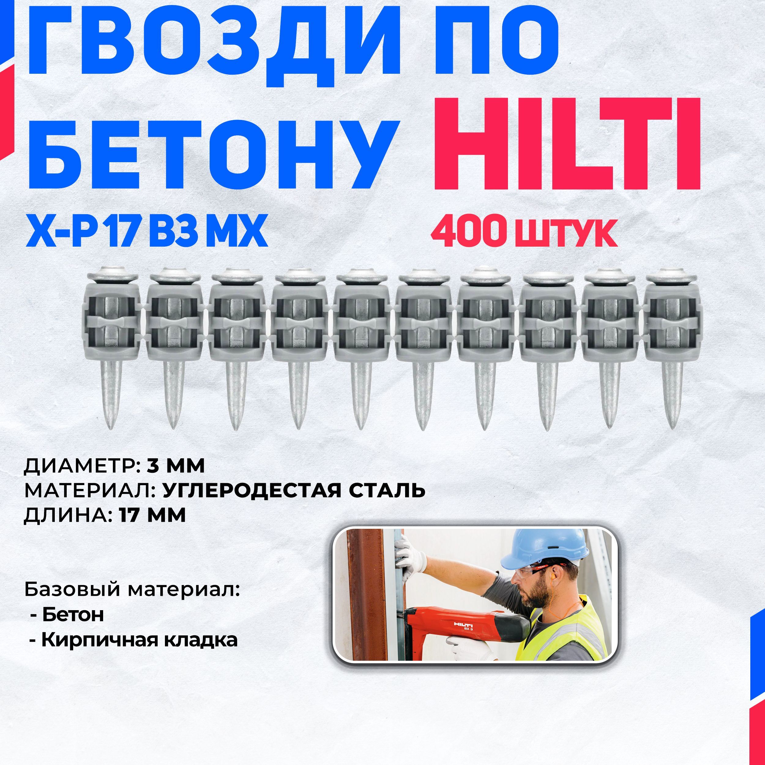 X-P G3 MX ГВОЗДИ ДЛЯ БЕТОНА (В ЛЕНТЕ)Высокоэффективный гвоздь для бетона в ленте для газовых монтажных пистолетов GX 3 и GX 120• Базовые материалы: Бетон (мягкий), Бетон (прочный), Кирпичная кладка (пустотелый бетонный блок, заполненный раствором), Кирпичная кладка (полнотелый известковый кирпич), Бетон (легкий на металлическом настиле)• Минимальная толщина базового материала (бетон): 60 мм• Минимальная толщина базового материала (сталь): 4 ммПрименения:• Монтаж в бетон высокой твердости• Монтаж к стали с использованием гвоздей 14 мм