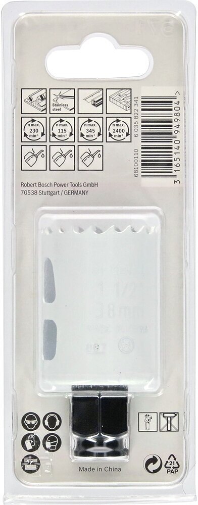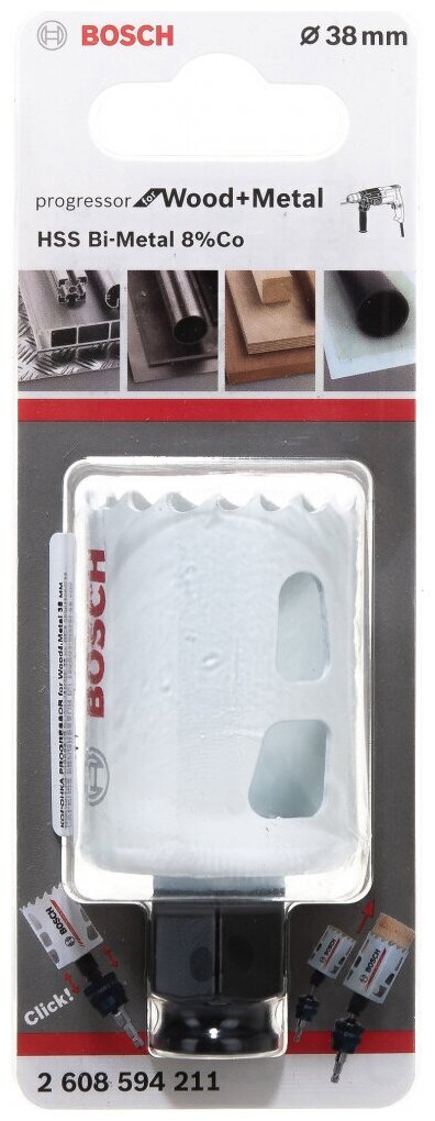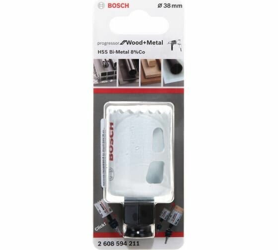 Коронка Bosch предназначена для сетевых и аккумуляторных дрелей-шуруповертов. Применяется для сверления отверстий в древесине, гипсокартоне, пластике, металле, цветном металле и нержавеющей стали. Коронка изготовлена из Bi-Metal с содержанием 8 % кобальта для повышения прочности. Оснастка имеет улучшенную полоску зубьев с прогрессивным шагом, что обеспечивает ускоренную резку.