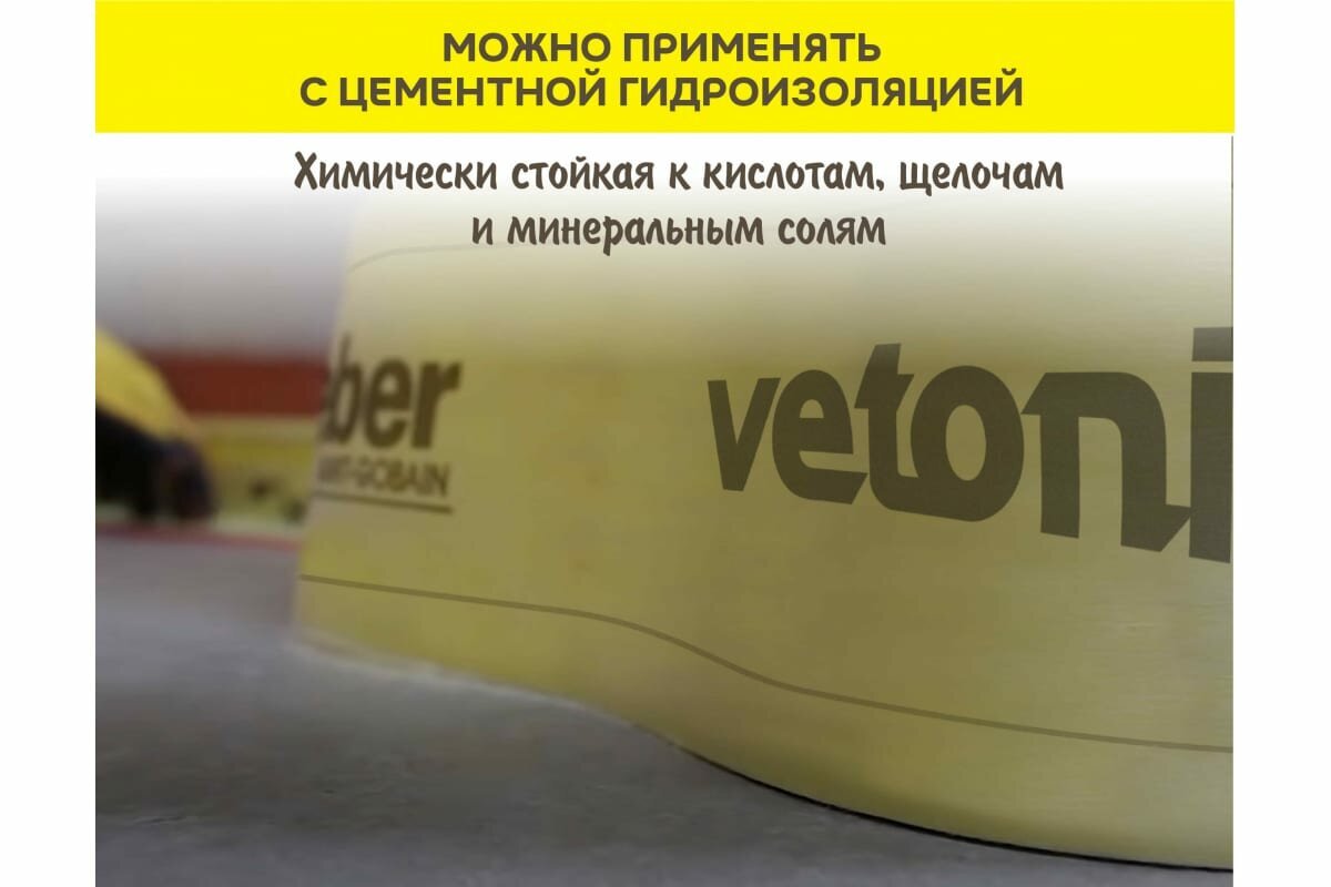 Еще одним важным свойством гидроизоляции VETONIT является простота использования. Продукт легко наносится и быстро сохнет, что позволяет сэкономить время и усилия при выполнении работ.