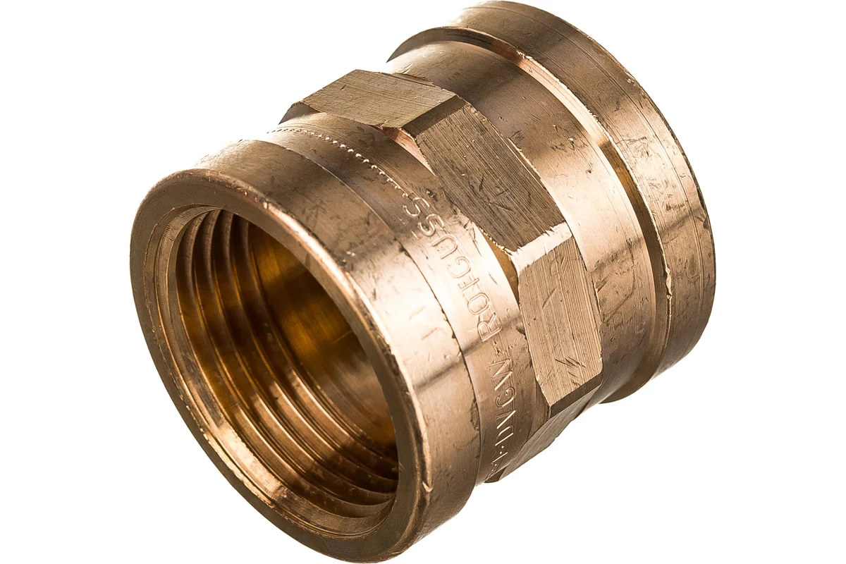 Муфта соединительная Viega 1/2" ВР бронза (серия 3270 Виега) внутренняя резьба (арт. 266585) снабжена с обеих сторон внутренней цилиндрической резьбой (Rp) размером 1/2". Для упрощения затяжки имеет внешнюю вставку под шестигранник.