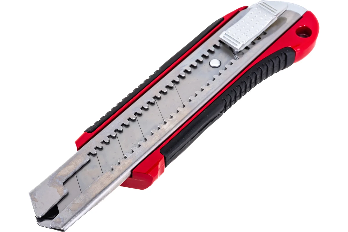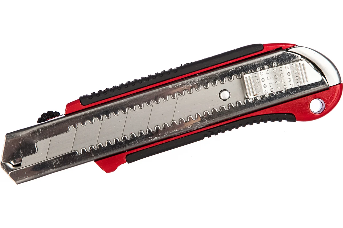 Нож 25 мм MATRIX MASTER 78959 с выдвижным лезвием применяется при строительных работах. Оснащен усиленной направляющей, которая не дает лезвию отклоняться в сторону. Прорезиненная часть позволяет надежнее удерживать инструмент. Фиксатор служит для закрепления лезвия, также есть возможность её замены.