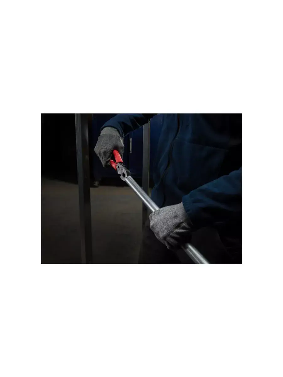 Пассатижи Milwaukee 48226100 обладают достаточной длиной, чтобы выполнять различные силовые работы. Инструмент оснащен обрезиненными рукоятками, которые обеспечивают надежное сцепление и уменьшают скольжение. Рабочая зона инструмента многофункциональна: она включает в себя зону опрессовки, зажима, реза и других операций.