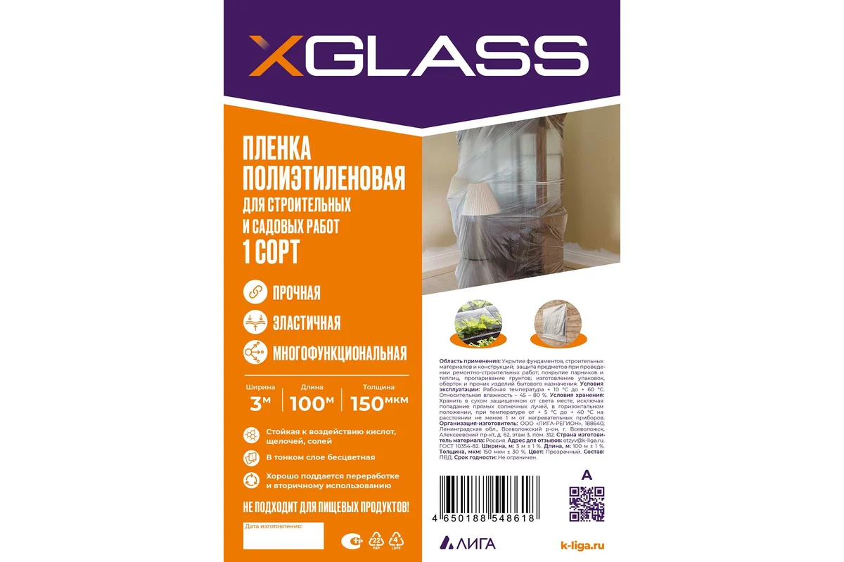 Внимание! Не подходят для пищевых продуктов. *Согласно ГОСТ 10354-82 Пленка полиэтиленовая: Предельное отклонение от номинальной толщины пленки 1 сорта составляет 30%. Плёнки 1 сорта, изготовленные по ТУ, могут иметь бОльшие отклонения по толщине. Плёнки ПВД 1 сорта XGLASS имеют максимальное отклонение по толщине 30%.