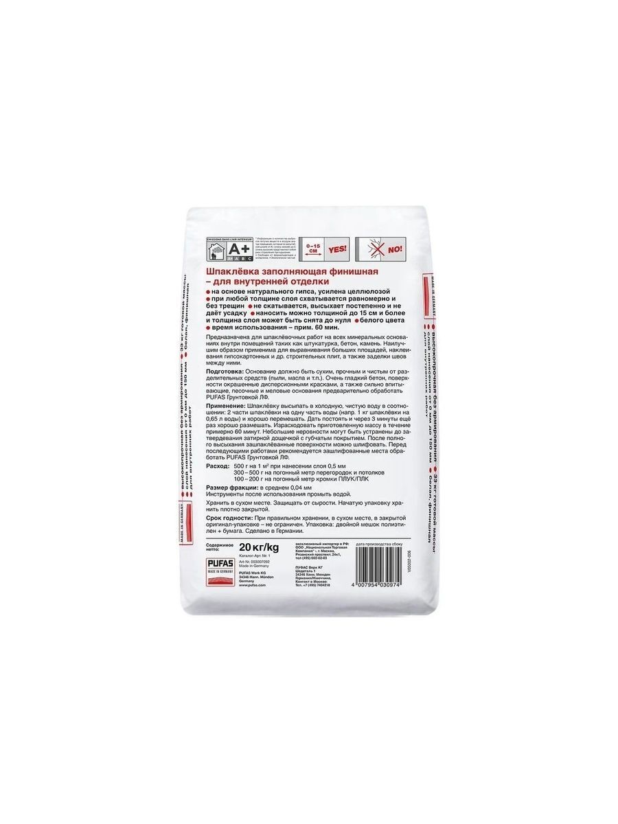 - Предназначена для шпаклевочных работ на всех минеральных основаниях внутри помещений, таких как штукатурка, бетон, камень, каменная кладка, газобетон, гипсокартонные плиты и т.п. основания.