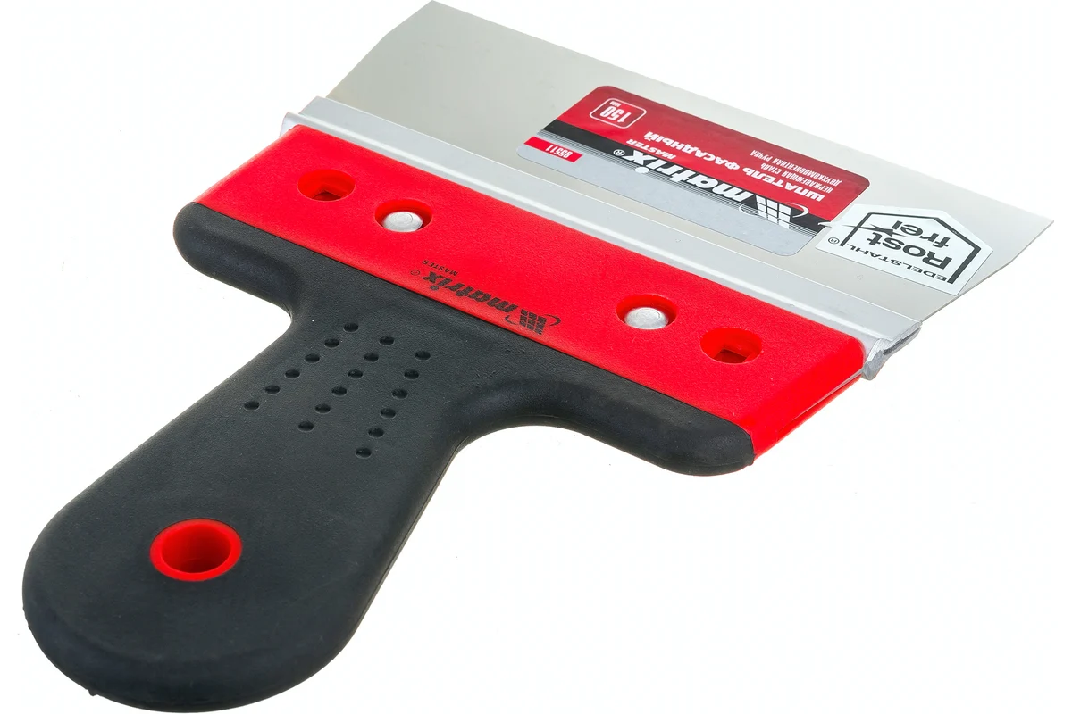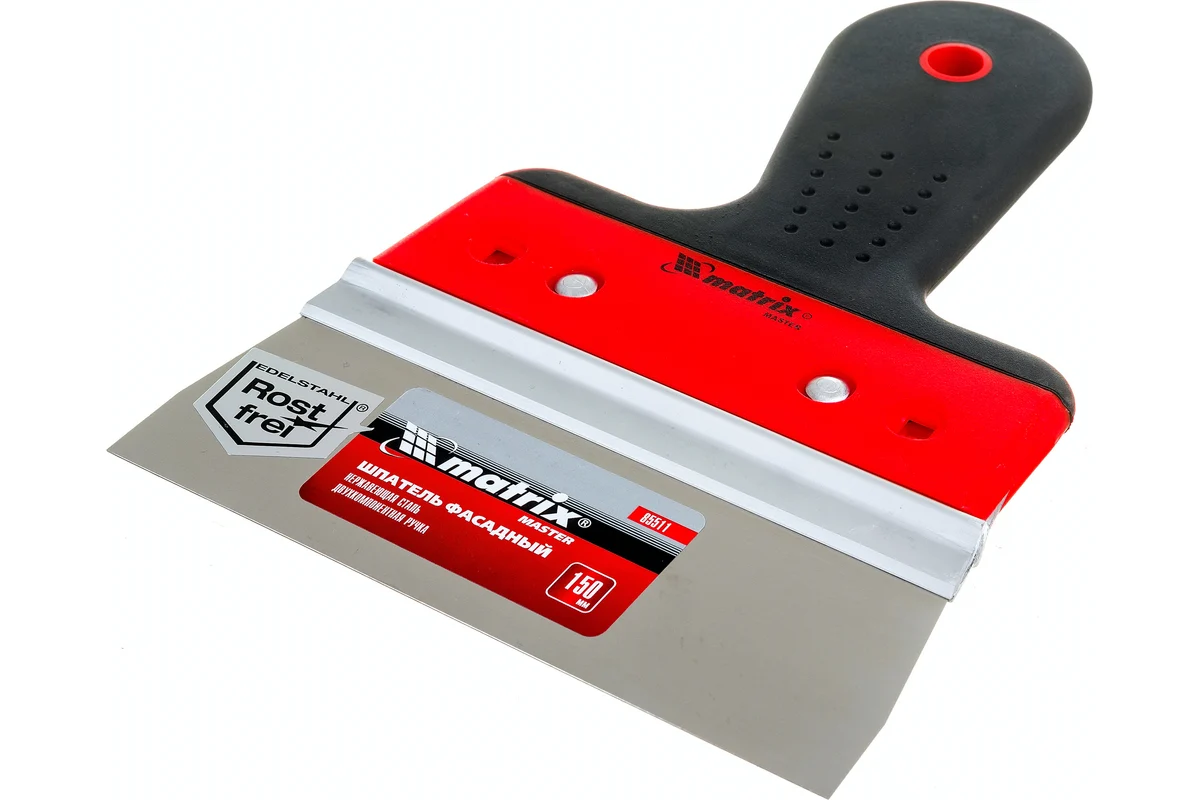 Фасадный шпатель Matrix 85511 из нержавеющей стали, с узким полотном 150 мм и 2-компонентной ручкой, используется для нанесения на поверхности и выравнивания растворов, декоративных штукатурок и т. д. Позволяет успешно решать как бытовые, так и профессиональные задачи.