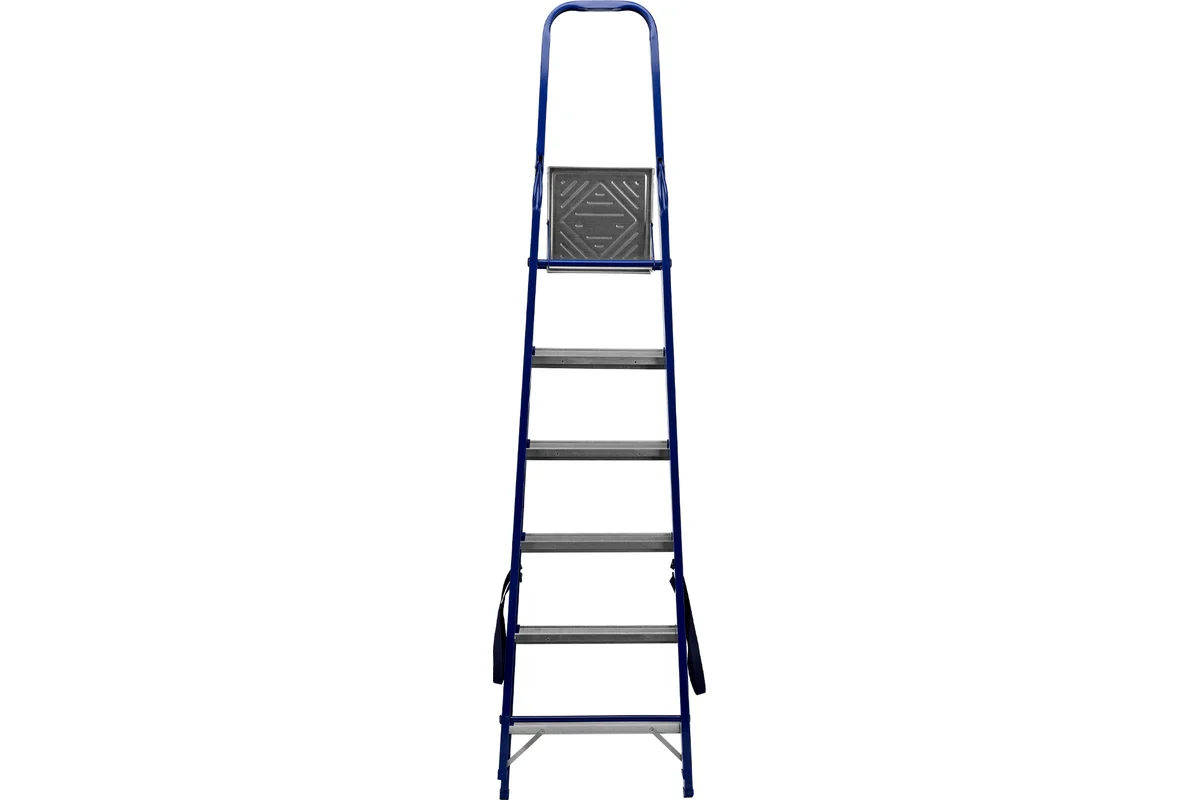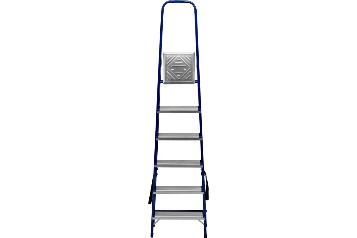 - Прочная страховочная лента удерживает стремянку в рабочем положении;