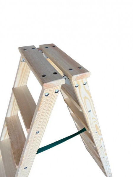 Прочная надежная стремянка WIDE из дерева 2x7 перекладин, пригодна для выполнения самых разнообразных работ. Высота стремянки 1,55 см. Достигаемая высота 3,10 м. Ширина ступени 85 см. Вес 11 кг. Стальные шарниры прикручены прочно и многократно резьбовыми креплениями. Для защиты от расхождения использована текстильная стропа. Боковины из высокосортной древесины без сучков. Дерево сосна, шаг между ступенями 25 см. Изготовлена из дерева и готова к нанесению отделочных покрытий. Максимальная нагрузка 120 кг.
