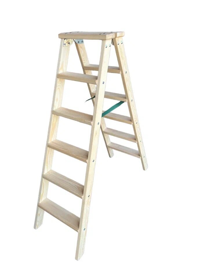 Деревянная стремянка Балчуг 2х6 WIDE подходит для разнообразных работ. Востребована у маляров, строителей и монтажников. Лестница стремянка деревянная изготовлена из сосны, экологически безопасна. Стальные шарниры надежно прикручены при помощи резьбовых креплений.