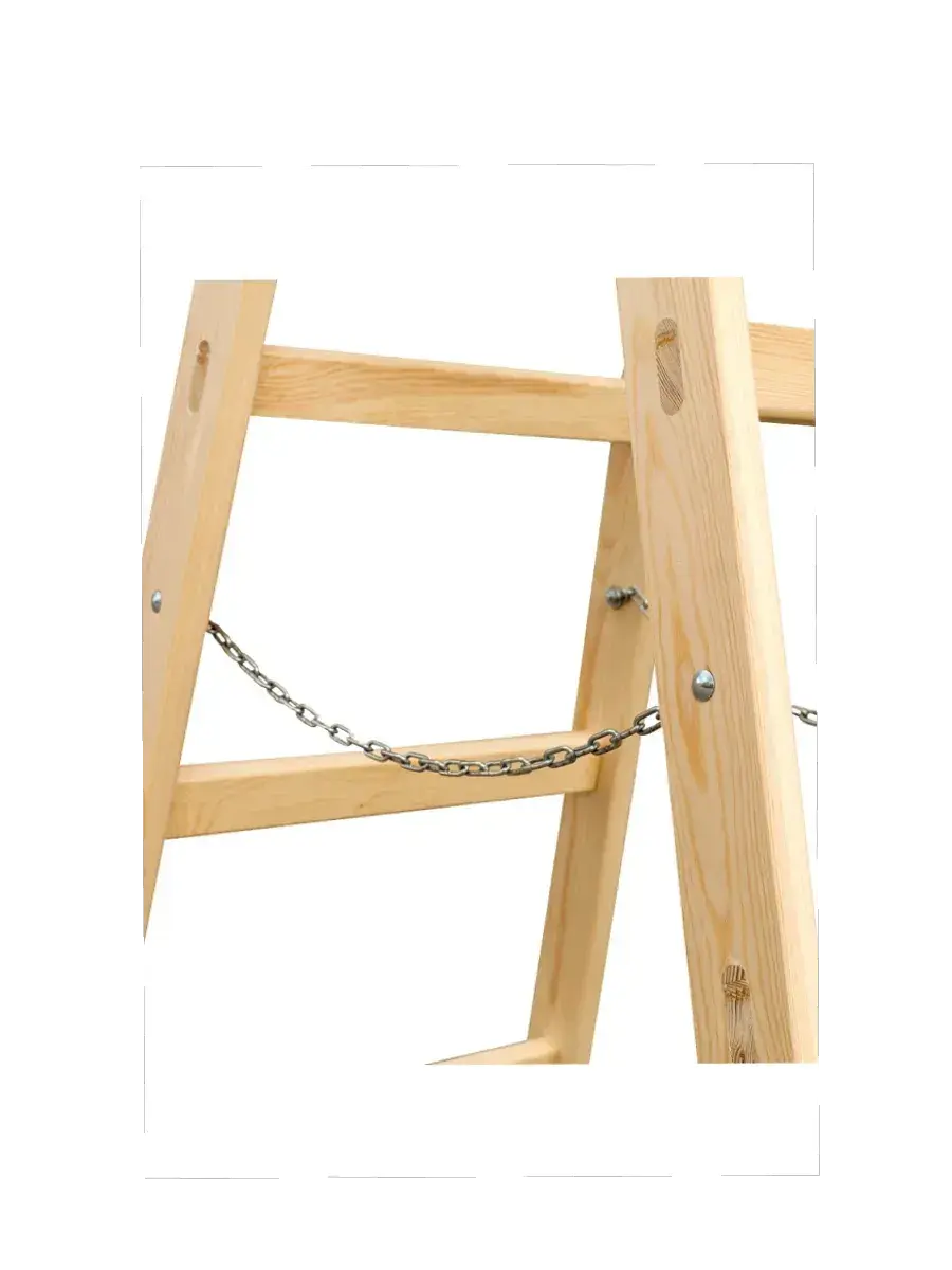 Прочная устойчивая стремянка из дерева по пять ступеней с каждой стороны. Высота стремянки в разложенном виде 1.55 м. Подойдет для потолков высотой до 2.55 м. Ширина верхней части 0.33 м. Ступени усилены металлическими креплениями, выдерживают нагрузку до 150 кг. Крепкая и надежная, в конструкции использованы стальные петли и цепные перемычки. Выполнена из высокосортной сосны, отшлифована, без сучков и заноз. Стремянки-ходули предназначены для работы под потолком и передвижения мастеров по площадке, не спускаясь с лестницы. Подходит для профессиональных маляров, монтажников и строителей всех направлений, а также использования в быту и для декора интерьера.