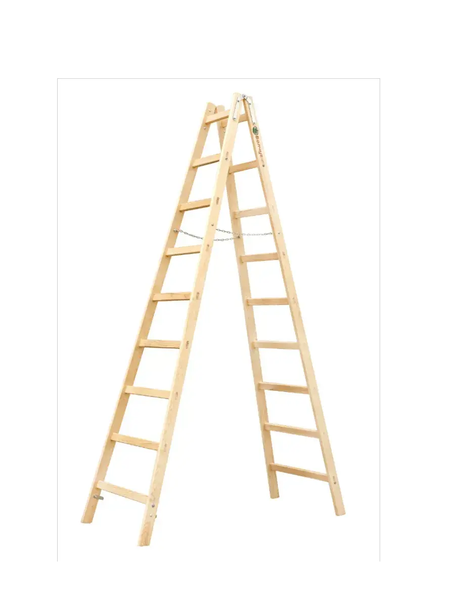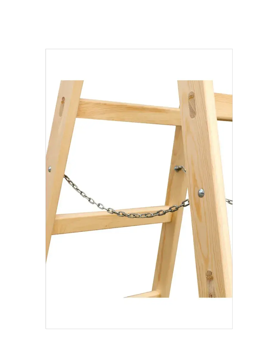 Прочная устойчивая стремянка из дерева по девять ступеней с обеих сторон. Высота стремянки в разложенном виде 2.70 м. Подойдет для потолков до 3.70 м. Ступени усилены металлическими креплениями, выдерживают нагрузку до 150 кг. Крепкая и надежная, использованы стальные петли и цепные перемычки. Выполнена из высокосортной сосны, отшлифована, без сучков. Стремянки-ходули предназначены для работы под потолком и передвижения мастеров по площадке, не спускаясь с лестницы. Подходит для профессиональных маляров, монтажников и строителей всех направлений, а также использования в быту и для декора интерьера.