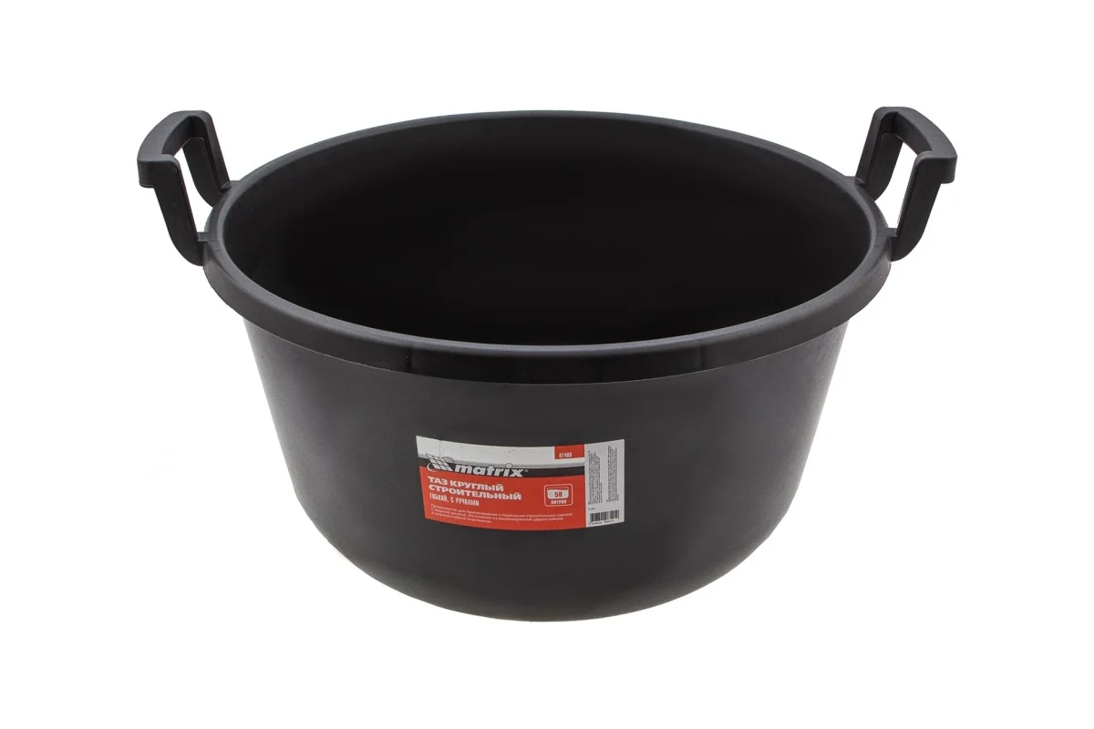 Строительный гибкий круглый таз с ручками MATRIX 50 л 81466 предназначен для замешивания строительных растворов любого типа при проведении ремонтно-отделочных работ. Благодаря диаметру 555 мм для приготовления смеси удобно использовать различный отделочный инструмент (шпатели, кисти).