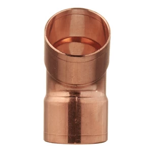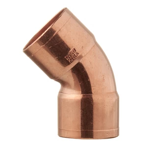 Предназначен для изменения направления трубопровода, применяется для соединения медных труб одного диаметра. Угол двухраструбный 45 градусов пайка VIEGA 28 – незаменимый фитинг для изменения направления трубопровода, применяется для соединения медных труб одного диаметра в системах холодного и горячего водоснабжения, напольного и центрального отопления, для распределения воздуха и сантехнического оборудования, при прокладке технологических трубопроводов. Изготовлен из деоксидированной меди Cu-DHP, содержание меди 99,9% аналог М1Ф.