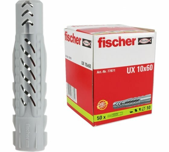 Дюбель Fischer UX 10X60 - это высококачественный продукт от известного производителя Fischer. Этот бренд зарекомендовал себя на рынке как надежный и ответственный поставщик крепежных изделий.