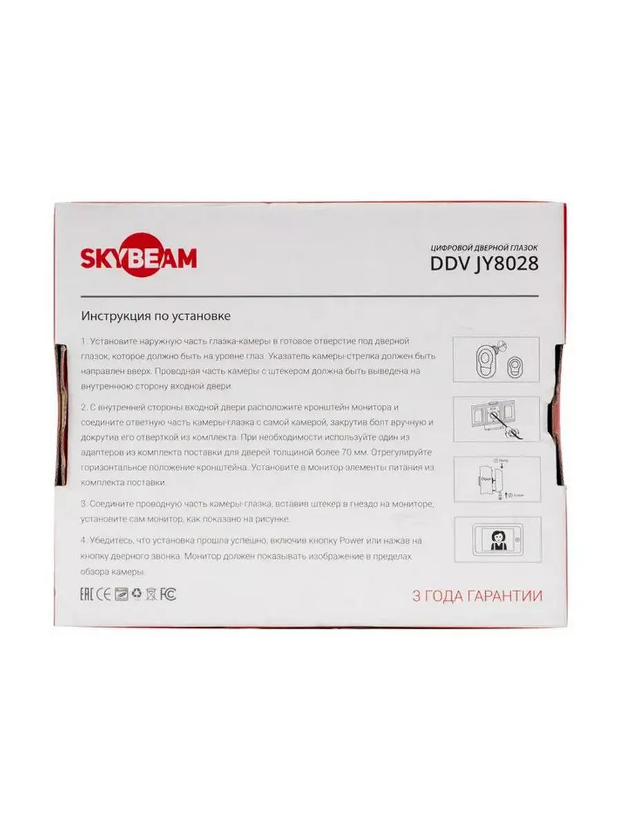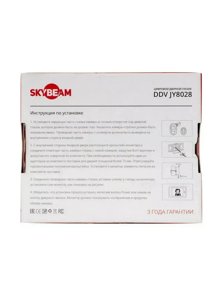 Видеоглазок со звонком мод. DDV JY8028 от компании SKYBEAM позволит отслеживать пространство перед входной дверью дома или квартиры. Устройство активируется нажатием кнопки включения, после чего на жидкокристаллическом экране появляется изображение происходящего в зоне охвата. Потенциальный гость не узнает, что вы дома, пока вы себя не проявите и не запустите его внутрь помещения. Автономное питание устройства облегчает его установку, так как отсутствует необходимость прокладки проводов. Материал корпуса — пластик. Цвет — черный.